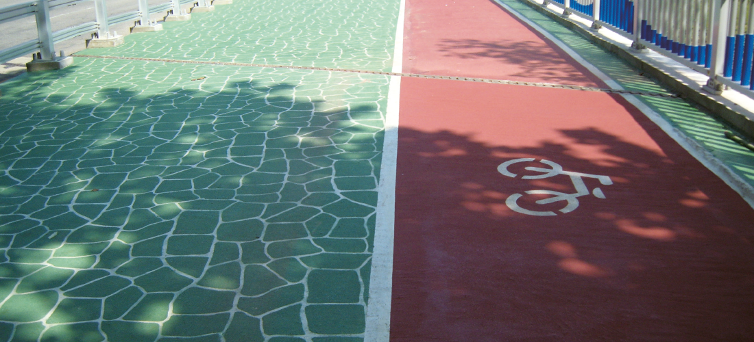 도막형바닥재는 기존 콘크리트 / 아스팔트 포장의 단점인 답답한 색상과 디자인의 어려움을 해결하는 동시에