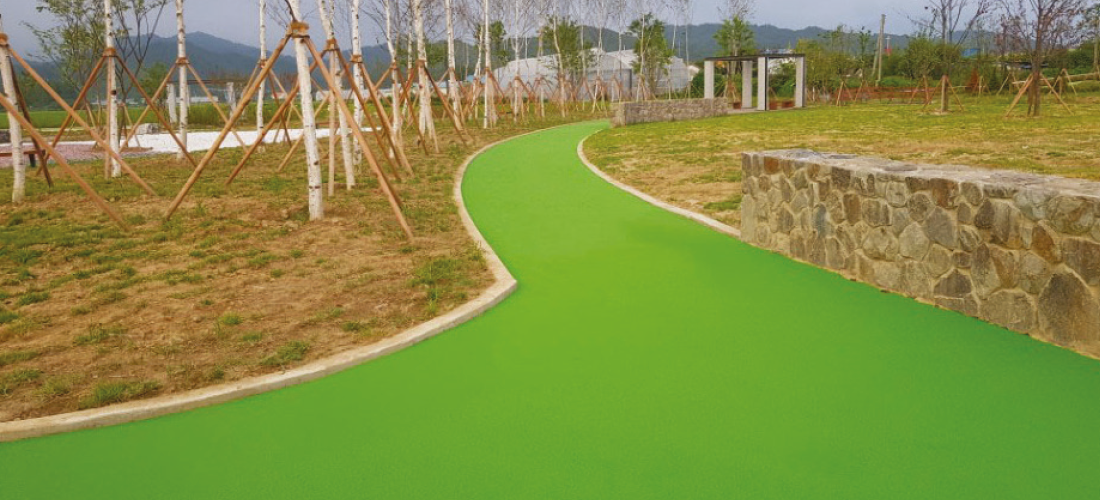 탄성력이 뛰어나 관절을 보호하며 주위의 경관을 한층 더 높일 수 있는 친환경 소재로 중금속 물질을 함유하지 않은 안전한 보행로입니다.