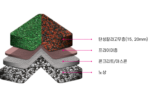 탄성력이 뛰어나 관절을 보호하며 주위의 경관을 한층 더 높일 수 있는 친환경 소재로 중금속 물질을 함유하지 않은 안전한 보행로입니다.