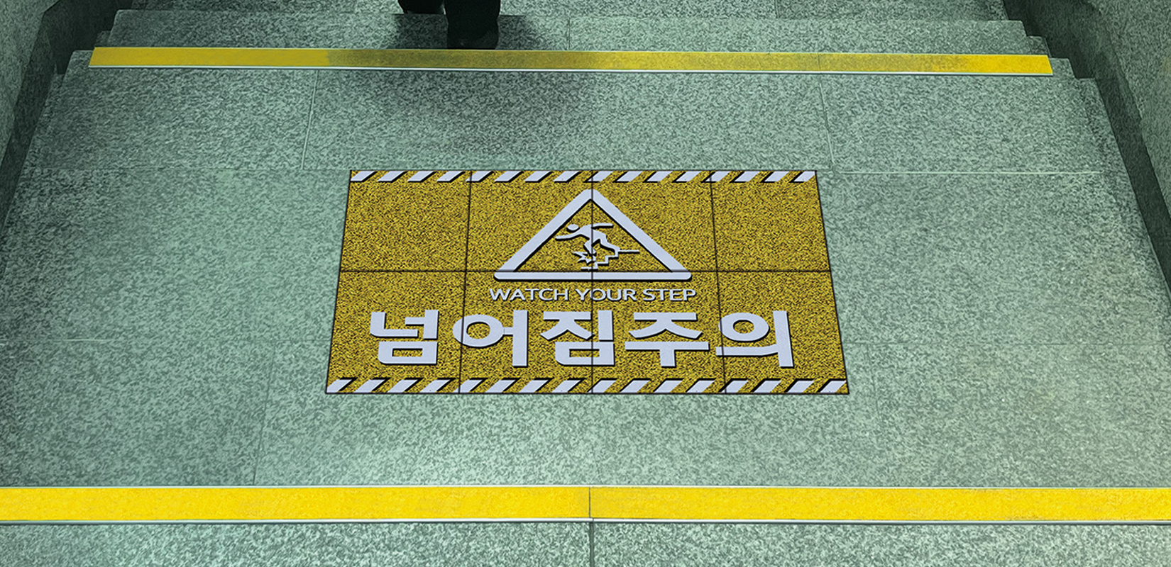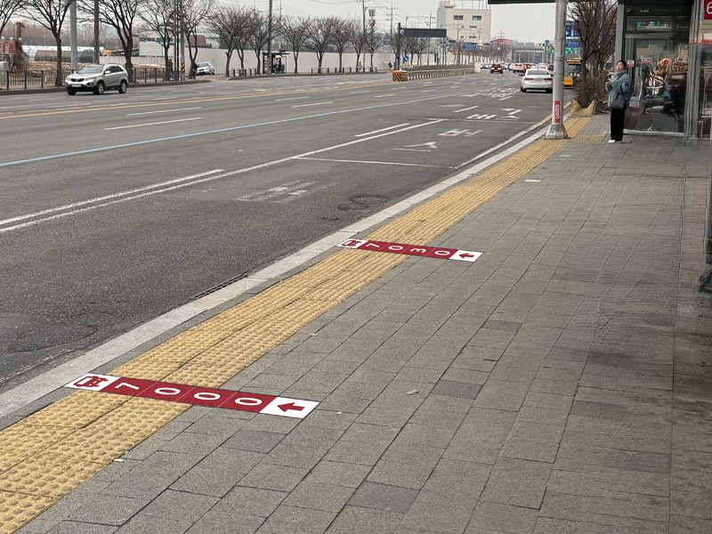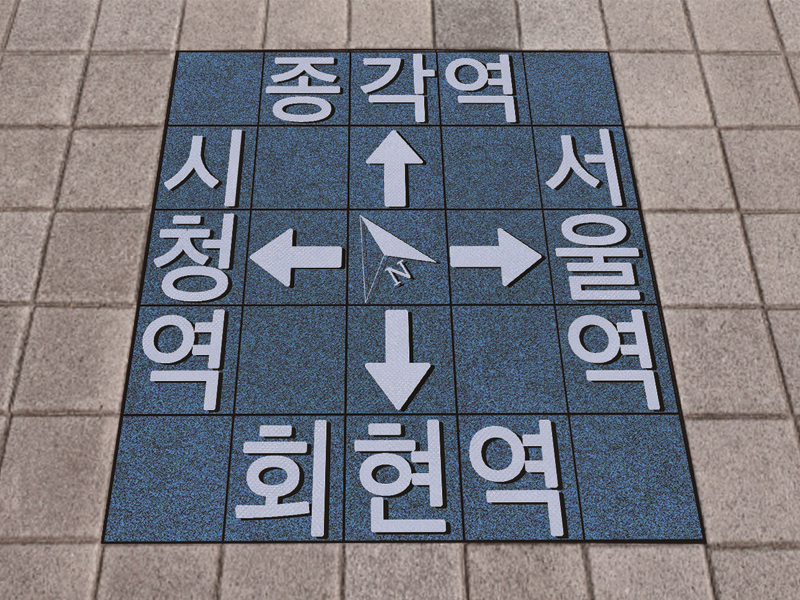 기능적 안내와 더불어, 그래픽과 색상을 입힌 블록으로 이용객에게 명확한 안내와 시각적 메시지를 전달합니다.
