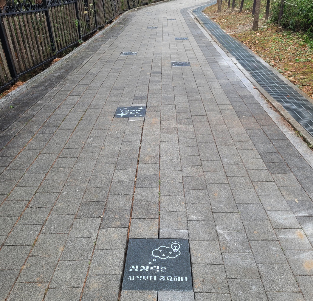 • 공원 및 단지 내, 하천변 등 산책로 등에서 구간 안내, 거리 표기, 감성 문구 적용